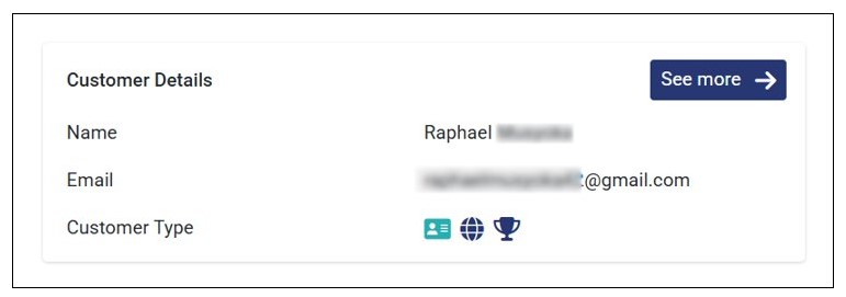 The customer dashboard provides a quick overview of the customer details. You can view the following details about the customer.