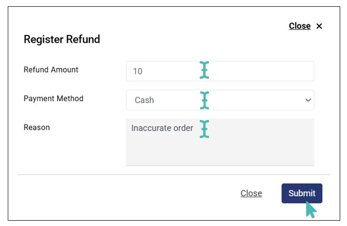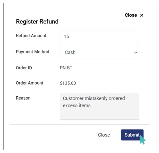 You may want to register a refund due to various reasons. For example, when a customer mistakenly submits an order and pays for it only to find out that it has an extra or unintended order item. In this case, they may request a partial refund for that particular order.
