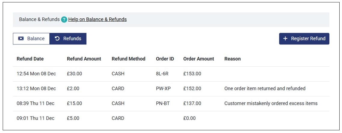 - Next, click the Refunds tab and then Register Refund.