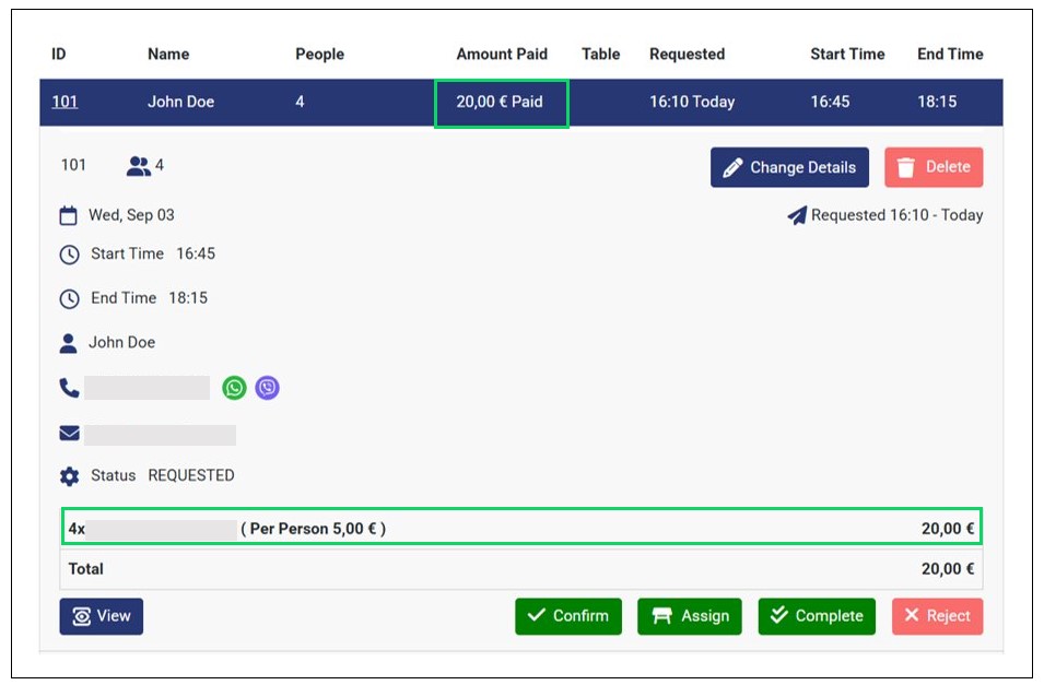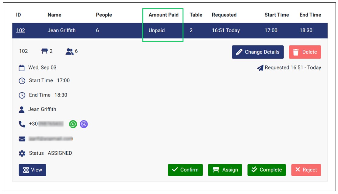 When the customer submits a reservation, whether paid (per person/ per reservation) or unpaid, you can view it on the reservations dashboard. Simply click Reservations on the left pane and select the Open tab to find your reservation. However, if you’ve activated the Auto confirm or Auto assign reservations settings, you will find the reservation on the Confirmed or Assigned tabs, respectively.