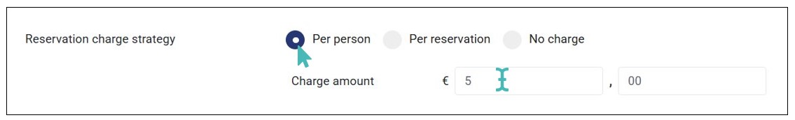 To set the Per person reservation charge strategy, select the option and enter the amount you’ll charge for each individual.