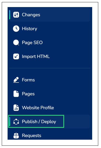 - Once you preview all the changes (both chat and/or manual) and are satisfied with how the changes look on your website, proceed to Publish/ Deploy on the left pane for the changes to go live.