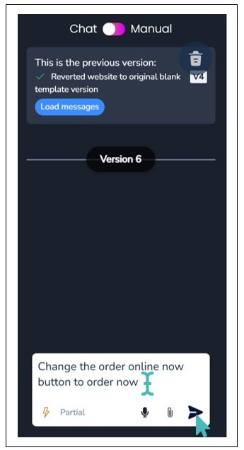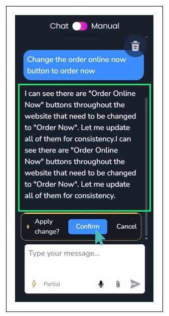 - Choose whether you want to make changes via Chat or Manual. To make changes via the Chat option, follow these steps: