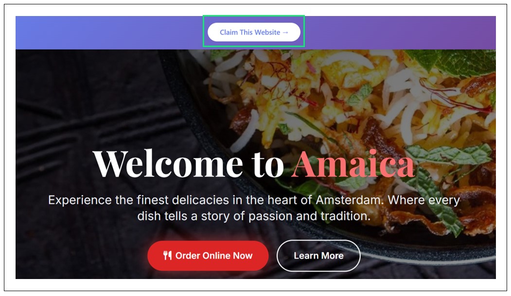- Next, check the website by clicking the redirect icon and see if it matches your desired needs and theme. If it does, click Claim This Website and complete the registration process (if you don’t have a Siteboon account). When you generate your website with Siteboon via GonnaOrder, you get a 20% discount to maintain your website on Siteboon.