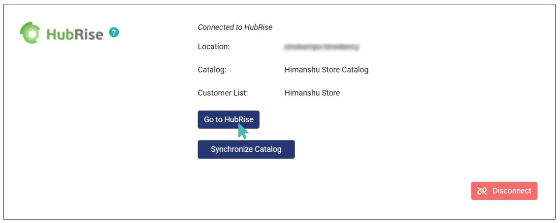 - Go to the HubRise integration section where you connected your store with HubRise.