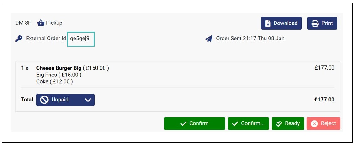 You can find orders originating from GonnaOrder on your POS using the unique External Order Id. The ID is generated by HubRise and sent to GonnaOrder when an order arrives in HubRise. You can view and copy the external order ID from the order details page in GonnaOrder and use it to search the order on HubRise.