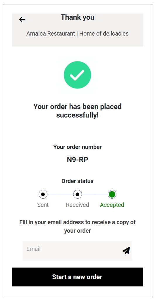 The status of automatically accepted orders changes from Sent to Accepted upon submission. This does not require any action from the waiter. The new orders immediately appear on the Confirmed orders tab instead of the open orders tab. Your store may also send an order confirmation email if the respective setting is enabled.