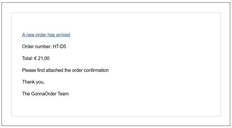 - Order has been confirmed: The customer will receive a message that your store accepted their order. There are three cases when GonnaOrder will send an email regarding order confirmation.