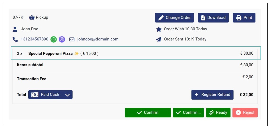- Order is ready: This notifies the customer that you have finished processing their order, and they can pick it up, or in the case of table service and delivery at a specified address, they should receive it soon.