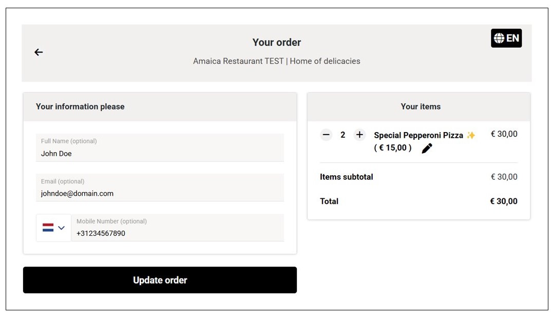 GonnaOrder gives you the ability to edit submitted orders. However, this feature is not enabled by default. Therefore, you can choose to keep it inactive or activate it to allow store staff to update orders.